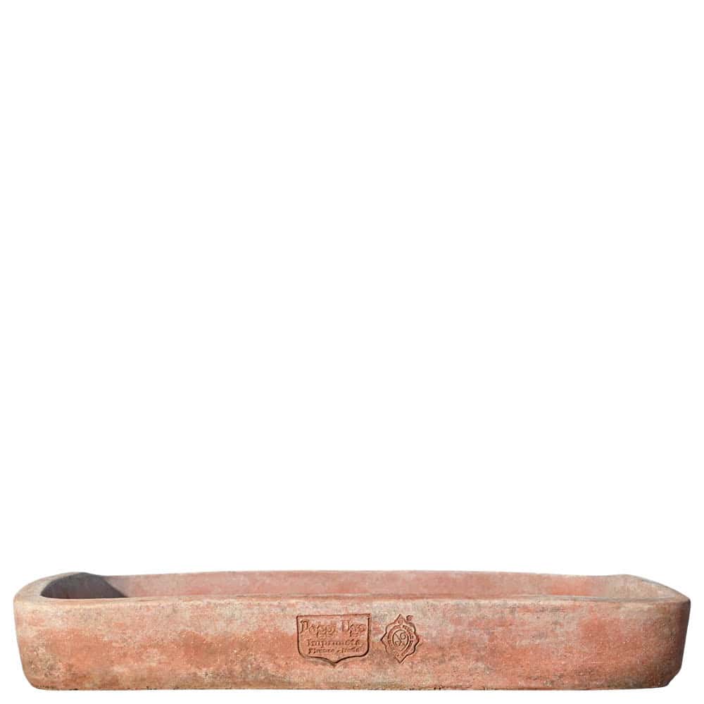 On one of the long sides, an impressed marking with logo and inscriptions certifies the manufacture and authenticity of the product. Solid and durable, the Basin dish fits perfectly in gardens, terraces, or greenhouses, harmonizing with the traditional ceramic production of Impruneta.