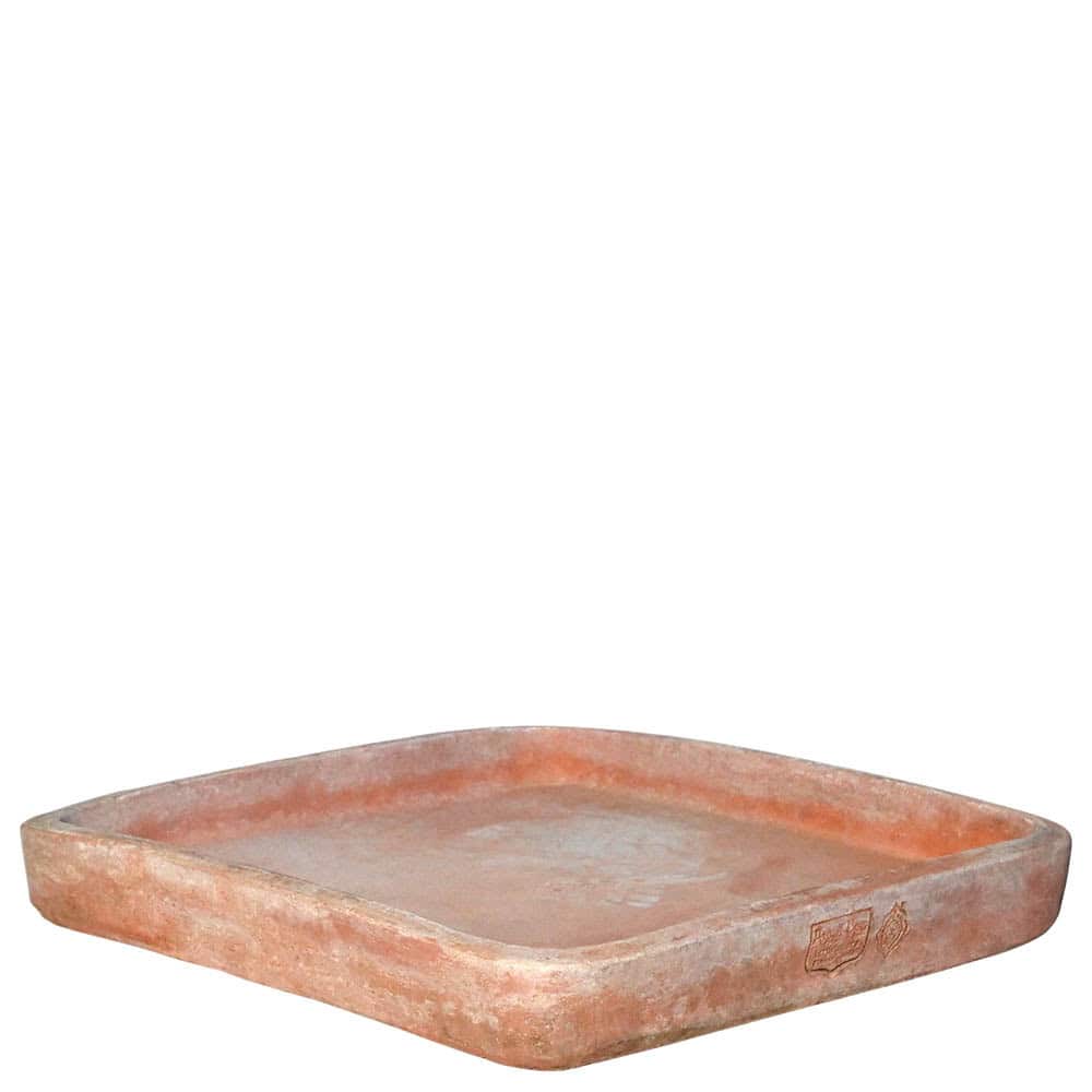 The Basin dish is a natural terracotta tray designed to support large pots or tubs, combining practicality and artisanal quality. Its flat, rectangular shape ensures stability, while the slightly raised edges around the perimeter contain excess water and protect underlying surfaces.