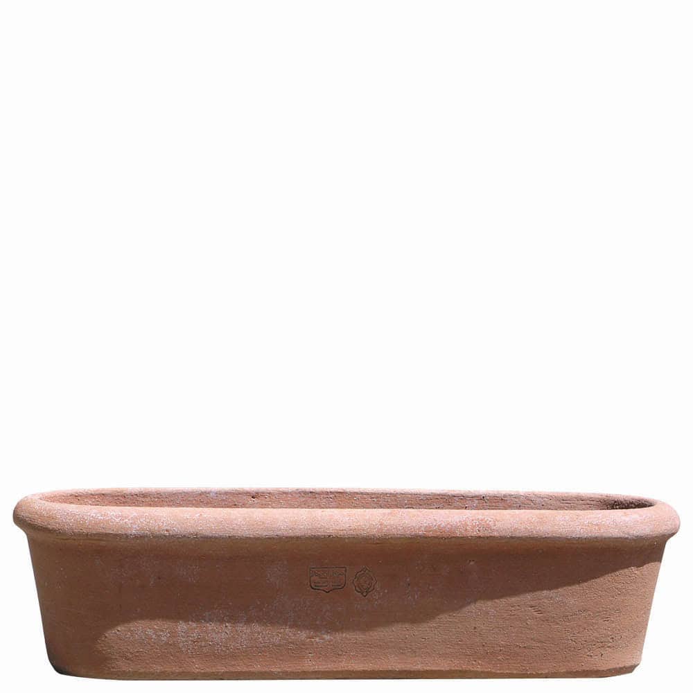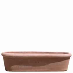 Rounded window box, Impruneta Terracotta. Flowerbox available in various heights and sizes. Handmade, using Impruneta clay, resistant to frost up to – 30° C. Great duration, the form remains unchanged over the course of the time. The roots’ and plants’ health is improved by the good breathability of the terracotta, its thermal isolation, and the slow release of the humidity from the watering. Suitable for individual use, compositions and to create separate spaces. Accessories. Squared flowerpot saucer, feet.