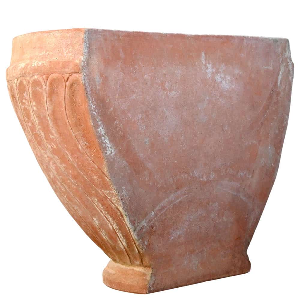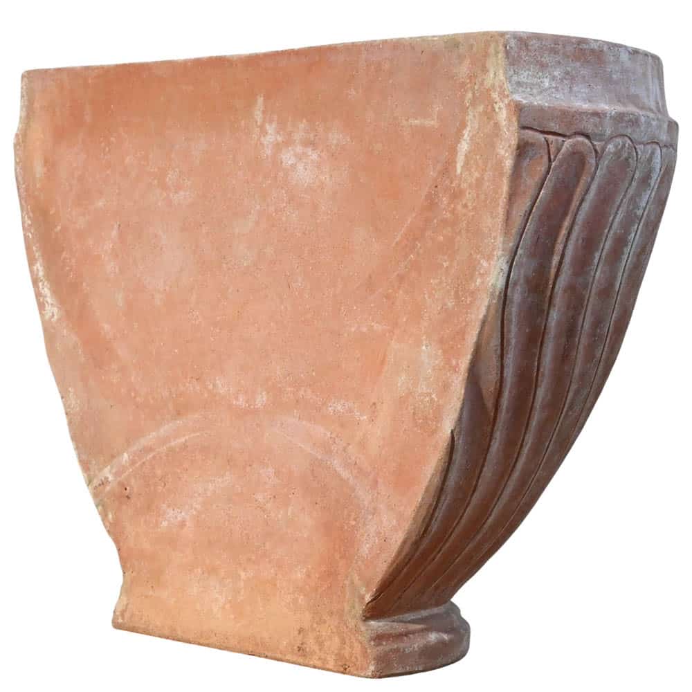 This terracotta wall planter is ideal for trailing plants, herbs, and small flowering arrangements, enhancing garden walls, courtyards, loggias, and entrances with a refined yet natural decorative presence.
