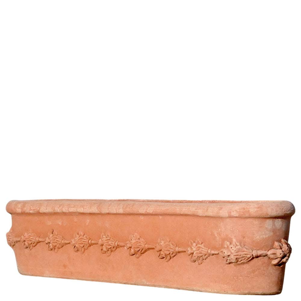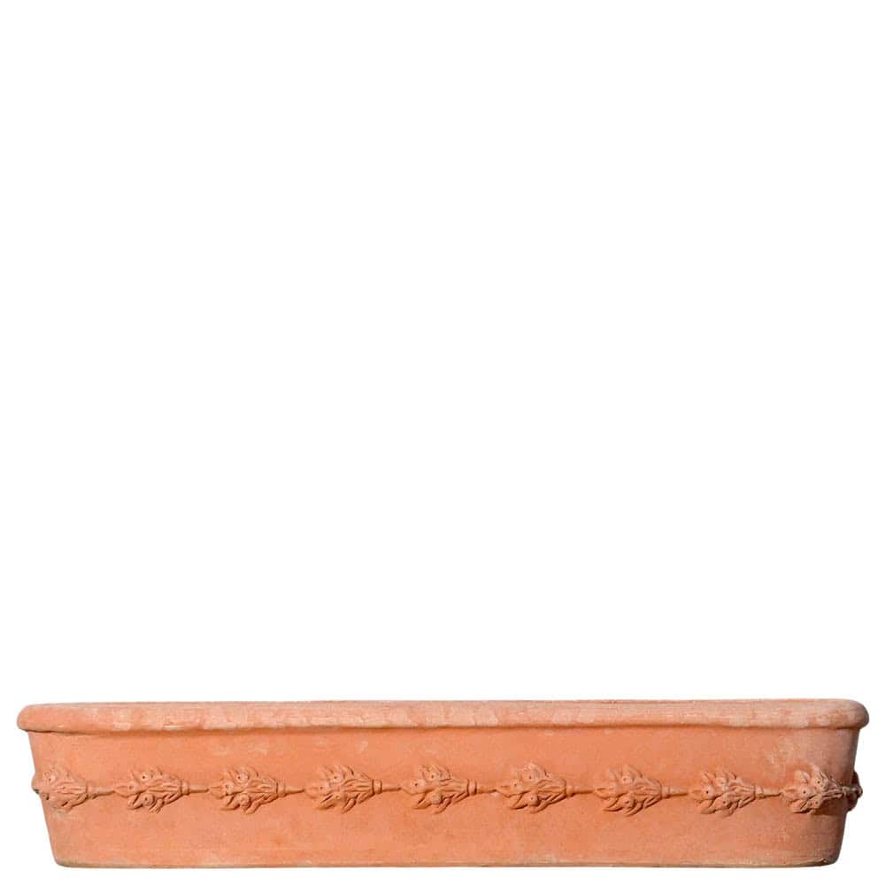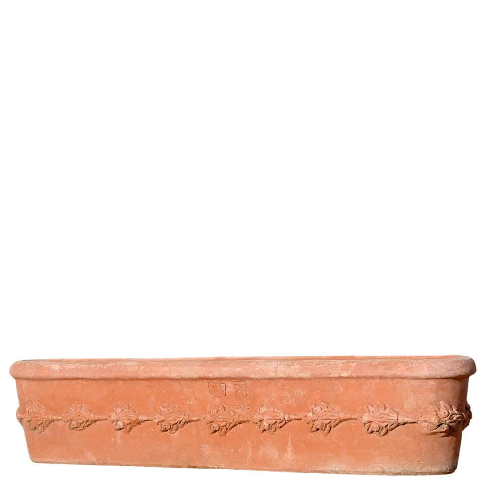 La Cassetta da davanzale con frutta in terracotta è un vaso rettangolare pensato per essere collocato su davanzali, muretti e spazi stretti. Il design classico richiama la tradizione artigianale di Impruneta, trasformando questa fioriera in terracotta in una soluzione funzionale ma allo stesso tempo decorativa.