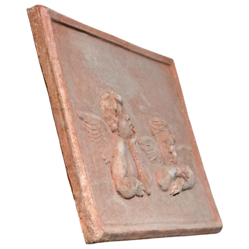 La superficie in terracotta naturale conserva le tonalita calde tipiche del materiale cotto, con una leggera patina che rafforza il carattere artigianale dell’opera. Questo pannello decorativo in terracotta si inserisce perfettamente in ambienti classici, collezioni artistiche e spazi dedicati all’arredo decorativo di ispirazione rinascimentale.