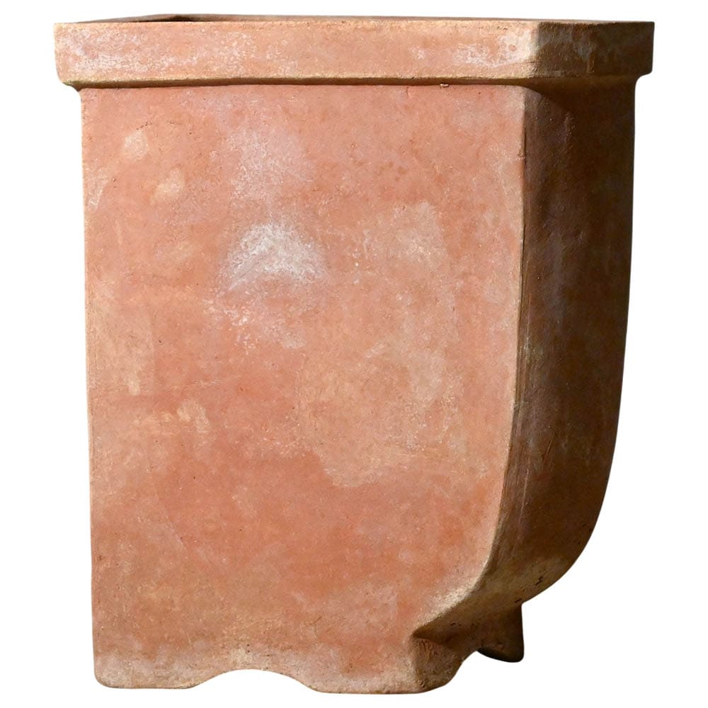 Questo vaso angolare in terracotta è ideale per piante di medie dimensioni e si adatta con naturalezza sia ad ambienti esterni che interni, mantenendo sempre un equilibrio visivo pulito e discreto.