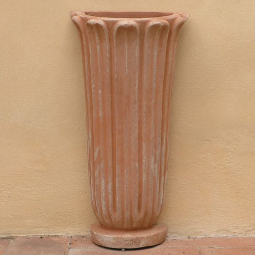 Un dettaglio distintivo di questa fioriera è la presenza di piedi smerlati integrati alla base, una caratteristica che non ha solo un valore estetico ma anche pratico. I piedi smerlati creano un naturale sollevamento dal suolo, favorendo una corretta circolazione dell’aria sotto la fioriera e, soprattutto, facilitando il deflusso dell’acqua in eccesso. Questo sistema aiuta a prevenire il ristagno idrico, proteggendo così sia la salute delle piante che l’integrità della terracotta stessa.